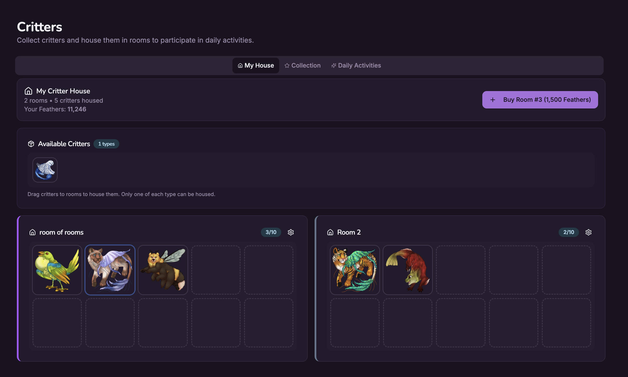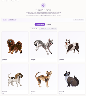 So honestly, your options are to click the Explore button to get money to go to one of the three shops that functions (There's a Critter shop that seems completely broken at the moment), or you can pay microtransactions to try to get more pets or breed pets. The website also says they do "giveaways" on their Discord server's Game Nights.